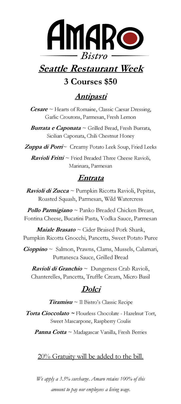 Seattle Restaurant Week Fall 2025 Join us for Seattle Restaurant Week during October 26th – November 8th, 2025 at Amaro Bistro!